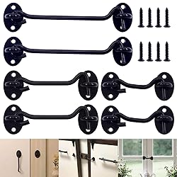 - Rustark 6 Pack Barn Door Latch Set 2'', 4'', 6'' Heavy Duty Coated Stainless Steel Solid Gate Latch Lock with Mounting Screws Cabin Hooks and Eye Latch for Window, Sliding Door, Bedroom ★Product Specification: Name: Barn Door Latch Color: Black Material: Stainless Steel Length of Latch Lock Hook: 3 different Length of a set, 2'', 4'', 6'' A Complete Set: A hook +2 pcs Eye+4 pcs mounting screws ★Why Choose us? Convenient Set: Coming with free mounting screws, saving your money and time to purchase installation tool High-value Material: Made of sturdy stainless steel, solid and hard, NOT easy to bent or break, long service time. Upgraded Craft: Coated with TWO layers rust-resistant black powder. Work great in all weathers, even in rain and snow. In addition, they also work great in bathroom, kitchen and any wet environment in your house. Harder, durable, long Lasting. Easy to Use: Installation with effortless. One step to lock and open Reliable After-sale Service:If you have any questions about our products or any problems with your packages, please feel free to contact us. We will reply you within 24 hours and we will try our best to solve the problems until you are satisfied. ★Why are the barn door latches important to you? ●Protecting your kids from sneaking out from the room ●Preventing your pets from going out. ● keeping security and privacy ★Package Included: 2 pack* 2'' latch lock hook 2 pack* 4'' latch lock hook 2 pack* 6'' latch lock hook 24 pcs*mounting screws Totally: 30 pcs
