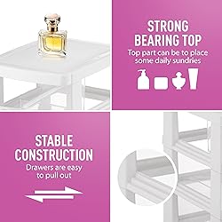 Tribello 3 Drawer Plastic Storage, Mini Drawer Unit, White Frame With Clear Drawers for Craft Storage - 8.5"L X 7"W X10"H Inches - (1 Pack)