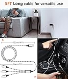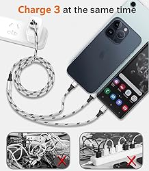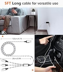✔3 in 1 Charger Cable: The multi charging cable is unique brings you convenience and sharing feeling. 3 charging tips in 1 cable make the phone charger simple, lightweight and portable. You can carry this multi charger cable anywhere, perfect for home, car, office, travel, dock or sharing with friends. A must have for Uber/Lyft drivers. ✔UNIVERSAL COMPATIBILITY: Type-c port compatible with iPhone 16 / 15 Pro Max, Samsung Galaxy S24/S23/S21/S20/S10/S9/S9 Plus, Note 8,S8,S8 Plus, Nexus 5X/6P, Pixel and other type c charging cable devices. Compatible with iPhone 14/14 Pro/13/13 Pro/13 Pro Max/12/12 Pro/12 Pro Max/11/11Pro/XS /XS Max/XR/8/8 Plus 7/7 Plus, iPhone 6/6 Plus, iPad4, iPad Air, iPad mini. Micro USB port for Samsung Galaxy S7/S6/S4 most Android phones, for Kindle, tablets, headphones and more. ✔Perfect Length: 3Pack 5ft multi usb cable enable you to charge your phone at ease. It's perfect for you to charge your phone when laying on sofa, bed or sitting in the backseat of the car and so on! Bring one multi charger cable, meets all your demand. ✔DURABLE MATERIALS: Powerful military fiber, the most flexible, strongest and most durable material, increases tension by 200%. Special strain relief design withstands 10,000+ bending tests. The high-quality aluminum housing makes the cable more durable and resistant to heat and corrosion. Ensure a longer service life. ✔WHAT YOU GET: 3 pack 5FT multi usb charging cable.