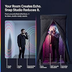 • Snap Studio Portable Vocal Booth: Singers, producers, voiceover artists, record clear vocals in your living room, garage, or bedroom without breaking the bank. Snap Studio = “reverb killer” professional vocals at home or on the go! The 360-degree Acoustic Mic Isolation Shield stands 210cm high with a footprint of 84cm, giving plenty of space in case you get a little pumped up while recording. The best part? You can lay down pro vocals without the hassle or added expense of hiring studio time.