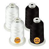 - WHITE + BLACK SELECTION - 4 HUGE Spools 100% Polyester Machine Embroidery Thread, 2nd generation Trilobal Polyester Yarn. Making the threads higher sheen, more vivid colors. Not only strength is important but the color fastness when it comes to laundering, chlorine bleach or any harsh chemicals individual.
