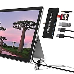 ❤ 【Multiport Surface Go / Surface Go 2 /Surface Go 3 Hub】Easily extend one USB C port and one Audio port to 1xUSB 3.0 + 2xUSB2.0 ports, 3.5mm Headphone Jack, SD/TF Card Reader, without install drive, plug and play. Specially designed for Microsoft Surface Go / Surface Go 2 /Surface Go 3 (Note:please do not use with protective case). ❤ 【Surface Go / Surface Go 2 /Surface Go 3 Adapter with Card Reader Port】Powerful SD/Micro SD Memory Card Reader: Eletrand Surface go Combo Dock Can't read and write SD/Micro SD card simultaneously, supports SDXC,SDHC,SD,MMC, RS-MMC and Micro SD, TF, Micro SDXC, Micro SDHC, UHS-I memory cards, support cards Capacity up to 128G.*Note: SD card slot and card slot can't be used at the same time. ❤ 【Surface Go / Surface Go 2 /Surface Go 3 Adapter with 1xSuper Speed USB 3.0+2xUSB2.0 Ports】USB3.0 + 2 USB2.0 Ports allow you to connect keyboard, mouse, usb drive, usb hard disks, etc to Surface Go, USB3.0 Up to 5Gbps data transmission speed, down compatible with USB 2.0 and below. ❤ 【Surface Go / Surface Go 2 /Surface Go 3 Hub with Audio and Mic 2 in 1 Port 】 Audio and Mic 2 in 1 Port makes listening, talking, or recording a breeze.Plug in your earphone and listen to crystal clear music and sounds from your Surface Go. ❤ 【Plug and Play &Hot Swapping】No driver installation is required. Matches excellently with your Microsoft Surface Go. 24 month warranty and no worry on return or refund.