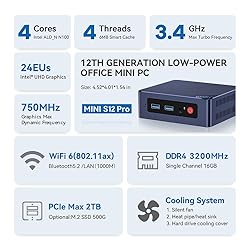 Powerful Performance: Beelink MINI S12 mini pc is powered by 12th Generation Quad-Core N95 (More Faster Than 10th Generation J4125). The lithography process of the CPU is 10nm, and its base operating frequency is up to 3.4GHz (4C/4T) and it supports a 6MB smart cache. The micro pc Pre-installed W11 64-Bits Os, running smoothly. Create a smooth experience for your streaming video, visual home entertainment, and light office, bid farewell to system stalls and buffering. High-capacity Storage: The micro desktops computer built-in 8GB DDR4, 256GB M.2 SSD (M.2 is much better than mSATA in terms of both smaller size and higher transfer performance). Multiple Interfaces & Function: The desktop computer adopts independently designed heat dissipation technology, and at the same time, it runs close to noiseless. The mini pc has a unique interface designed with 2 x HDMI ports, 4 x USB3.2 Gen2(10Gbps) ports, 1 x RJ45 1000M Port, 1 x Audio Jack (HP&MIC) port. Supports connecting monitors, projectors, Mobile phones, and other equipment. Moreover, this computer supports Wake On LAN, Auto Power On, PXE Boot. To meet your various needs. Dual Screen Display: The Micro Computer is equipped with Dual HDMI 2.0 Ports. When you buy this computer, we will give you HDMI cable, you can connect two monitors at the same time, which can improve your work Efficiency. The Beelink mini pc uses Intel UHD Graphics to support 4K HD video playback. You can easily enjoy 4K video playback, or connect to your projector as a home theater and enjoy various entertainment. Widely Used & Safety: The MINI S12 Mini PC can be used for visual home entertainment, office, light games, digital security, digital signage, billboards, media center, conference room, etc. In addition, the cheap pc also supports Linux operating system(ubuntu), meets server construction, software compilation, or other DIY needs. All of our desktop computers obtained FCC, ROSH, CE certification. We also offer 1-year factory professional support & 7*24 hours online customer service.