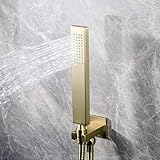 Ownace Square Solid Brass Brushed Gold Hand Held Shower Head With Wall Connector and Hose Set