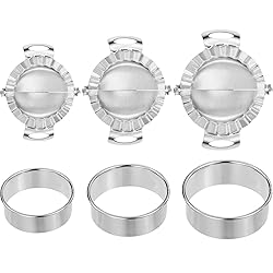 - 3 Pieces stainless steel dumplings makers dumpling press molds and 3 pieces dumpling skin maker kitchen dough ravioli skin press cutters for home kitchen pastry tools Features: Non-stick and easy to clean: The dumpling making tools are smooth and non-stick in surface, easy to release your dumpling and other foods without leaving any residue, just rinse the molds under running water, easy and convenient to clean. Durable to use: These dumpling press molds and skin makers are made of stainless steel material, durable and solid to use, wear-resistant and corrosion resistance, not easy to deform or break, can serve you long time. Specification: Material: stainless steel Size: Dumplings maker: 8 cm, 9.5 cm and 10 cm Dumpling skin maker: 8 cm, 9.5 cm and 10.3 cm Color: as picture shown Package content: 3 x Dumplings makers 3 x Dumpling skin makers Notice: Please allow slight errors on size due to manual measurement.