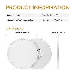 - Technical Specifications: Material: Frosted PC Power factor: More than 90% CRI: More than 95 CCT: 3 modes, 3000K warm white; 4000K natural white; 6500K daylight Power: 24 W Illumination: 2200 lm Efficiency: 100 lm/W Power Input: 100 to 240V AC, 50/60 Hz Working Temperature: 4°F to 104°F Lifetime: Over 30,000 hours Package Includes: 2x ceiling light, 2x instructions, 2x components Product Dimension: Diameter: 15.8 inches; Thickness: 0.94 inch Taloya MOON Patented LED Ceiling Light is not only a light but your attitude towards spiritual life! Bring me home and enlighten your ceiling.