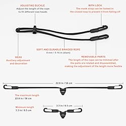 Comfortable and adjustabl, you can change the tension you like at any time Face mask extenders lanyard can eff ectively ear pain relieved and Improve comfort Large size and stepless adjustment length can adapt to various head types Microelastic cotton rope can anti slip and absorb sweat, can be machine washed The hook with locking function can fi x the mask strap without falling of