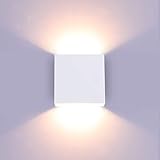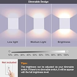 MODERN & FASHION DESIGN - The sleek wall lamp, with 2 COB LED beads (Included, CANNOT be replaced), emits up and down fan-shaped soft lighting, creating a warm and comfortable atmosphere. Average life: 50,000 hours. SOFT & HOMELY - Warm white light 3000K, uniform and stable illumination, no glare, creating a warm and comfortable atmosphere, suitable for living room, bedroom, kitchen, staircase, corridor, exhibition hall, bar, etc. EASY TO INSTALL - Hardwired and surface mounting, using screws to fix, not difficult to install, but suggest to install by a license electrician. Can be mounted vertical or horizontal to suit the decor. SIMPLE LOOKING - The product size is 4.7" x 4.7" x 1.9" / 12 x 12 x 5cm, nice and simple design, looks very sleek and decorative, elegant and beautiful. DIMMABLE WALL SCONCE - Max.10W. Adjustable brightness by the dimmer switch to meet the different lighting needs. Note: there is NOT any switch on the light, you need to install a dimmer switch on your wall.