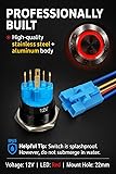 Latching ON/OFF push button. Press once to turn ON, press again to turn OFF Red angel eye LED ring illuminates when pressed Pushbutton rated 3 amps at 12vdc Polished stainless steel with black aluminum body Comes with pre-wired 6-pin socket. Easy installation into 22mm (7/8") mounting hole