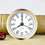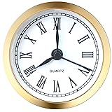 ✔️ Overall Outside Diameter:2.4 inch (61 mm).This is the outside diameter of the clock face. Mounting depth: 0.47 inch (12 mm). ✔️ Mounting Inside Diameter: 2.13" (54mm) : This is the insert diameter of the opening that the clock fits in. With addition of the ring gasket (included) this increases to 2.2" (56 mm). You can use this roman clock insert to make clock crafts. ✔️ Appearance:The insert clock features smooth surface and gold bezel with exquisite workmanship. The craft clock insert is designed with black roman numerals marking on the white dial plate for easy reading. ✔️ High quality: This mini clock is your good choice to make crafts or use it as a nice gift. Perfect for home, kitchen, office,etc. ✔️ Compatible clock: Miniature clock fitup Insert replacement fits in many types of small glass & crystal clocks quartz movement. Great for crafts or replacing old clock faces.