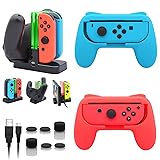 FASTSNAIL Charging Dock and 2 Pack Switch Grips Kit for Nintendo Switch Joy Con & OLED Model, Charger Stand Station with Charging Cable, Wear-Resistant Grip Controller with 6 Thumb Grip