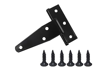10 T-shaped hinges, size: 95 * 62mm / 3.7 * 2.4" Color: black. Made of high-quality iron, the surface is covered with imitation galvanized coating, corrosion-resistant and rust-resistant. High-quality galvanized T-shaped hinge, long-term use, easy to install. The T-connector is a fully assembled accessory mounting screw. Suitable for families, various office doors, cabinet doors, wardrobe doors, etc.