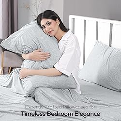 - Utopia Bedding Bed Sheet Set - Jersey Knit Sheets 4 Piece Queen Jersey Sheet Set – Jersey Cotton Blended Bed Sheets – Soft Stretch Sheets - Jersey Bed Sheet Set (Queen, Heather Light Grey)