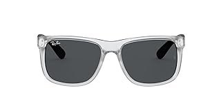 SIZING INFORMATION: This frame size is S with a hinge to hinge measurement of 126 mm. Ideal for narrow to average faces. FRAME FEATURES: Justin RB4165 reimagines the iconic Wayfarer with larger rectangular lenses for everyday wear and travel. Lightweight rubberized transparent frame delivers all-day comfort while dark grey lenses reduce glare. 100% UV PROTECTION: To protect your eyes from harmful UV rays, these Ray-Ban sunglasses include lenses that are coated with 100% UV protection. CASE & CLEANING CLOTH INCLUDED: Each pair of Ray-Ban sunglasses come with a cleaning cloth and case to clean and protect your sunglasses from scratches and damage. VISIT THE RAY-BAN BRAND SHOP: Click on the Ray-Ban link above the product title to shop the entire Ray-Ban sunglass and eyeglass assortment.