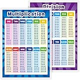Outus Educational Math Posters Laminated Multiplication Division Chart Math Poster for Elementary School Classroom Decorations Preschool Kids Learning Supplies