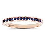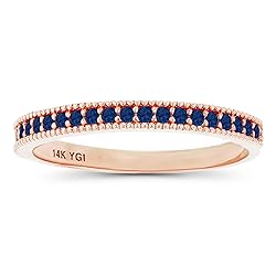 14K SOLID GOLD: This product is made of solid 14K gold and each piece is carefully trademarked with the metal purity for certification. Each piece is stamped 14K or 585 and that guarantees the quality and craft. Created-Blue-Sapphire: This 14K Rose Gold 1.25mm Round Created Blue Sapphire Milgrain Anniversary Ring features 21 gemstones with a total carat weight of 0.21 CTW. DESIGN & FINISH: We understand jewelry and we really understand the manufacturing process of precious metal. Each piece is carefully designed from scratch by our design department and we are happy to present to you our finished product. All metals used are lead free, nickel free, and hypoallergenic. We trust that you will greatly enjoy the quality of this item! PERFECT FOR ALL OCCASIONS: Looking for the perfect compliment piece? With this clean and classy look, our 14K Rose Gold 1.25mm Round Created Blue Sapphire Milgrain Anniversary Ring can be worn for a casual everyday look yet it can complement a more upscale outing. These would also make a heartfelt gift for someone special- An easy yet great choice for your loved ones- Perfect for those timeless moments: Anniversaries, Weddings, Mother's Day, Christmas, and Birthdays. PACKAGING & PRESENTATION: Each 14K Rose Gold 1.25mm Round Created Blue Sapphire Milgrain Anniversary Ring is hand packed in our signature gift box and would make an exquisite and thoughtful gift. We trust that you and your loved ones will really enjoy our product! We look forward to serving you again in the future!