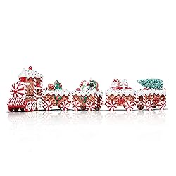 【Hand Crafted】This classic gingerbread Christmas decor is handcrafted and good for mantel or table decor, helping to capture the warmth and charm of the season for your home. 【Quality Material】Trimmed with classic frosting accents and the glitter finish, the gingerbread decorations are made of clay dough with hand painted details. Our Christmas train decor is non-toxic and odorless without any sharp edges or points. 【Timed Lighting】Pre-lit with 3 AA batteries (not included) and a built-in 6-hour integrated timer, this Christmas gingerbread decor can light up at the same time, enhancing the festive ambiance of your table centerpiece, fireplace or any space every day. 【Exquisite Design】Comes with 5 gingerbread train cars, respectively Christmas bottle tree, snow man, Santa clause and gingerbread man on the cars. Our colorful gingerbread decorations for Christmas can bring a great fairy tale touch to your holiday decorations. 【Ideal as Gift】Mixes with your Christmas décor and bring a fun addition for kitchen or a table, adding a touch of holiday whimsy to any space. And the Christmas train is also a darling Christmas gift for a collector.