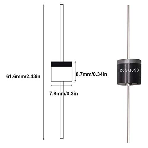 Tnisesm 20 Pcs 20SQ050 20A 50V Schottky Blocking Diode, Rectifiers Diode,Diode Axial Kit for Solar Panel