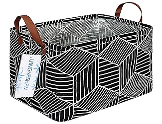 - Note:The storage basket comes with compression packing which may result in crumpled in long-distance transit. It will recover after a period of time using or put stuff in side.and also can be smoothed out by steam iron and hairdryer. 1. Made of Fabric: The material is rigid,it will stand up on its own neatly, not stay 'soft' looking if it isn't packed full of stuff, they hold their shape perfectly. 2.Folding for easy storage: The storage hamper are folding for easy storage.Fold up the bins and carry the storage basket container wherever you want ,like in your truck ,car,closet or study room. 3.Easy to care:This convenient storage basket are easy to clean,just wipe with a damp sponge or cloth. 4.Thick handles: Every storage container has two thick handles,these thick handles are designed to give you optimum tension and comfort while transporting these amazing storage bins.