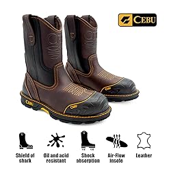 Steel Toe Protection: ASTM F2413-24 certified. Designed to meet safety standards, this boot features a reinforced steel toe for maximum impact protection in tough work environments. SECURE & BUILT TO LAST – Designed with our innovative Shark Shield technology, the reinforced toe and heel provide superior protection against rough surfaces and harsh conditions. These durable shields work together to ensure your boots are ready to tackle any task alongside you, no matter how demanding the job. FOR PROFESSIONALS JOBS: These boots are perfect for professionals in warehouse, utilities, manufacturing, construction, plumbing, driving, mechanics, facility maintenance, roofing, and welding. Tailored for your workday demands. Built for comfort and reliability: Shock-absorbing design, breathable insoles, and a stable foundation for your daily work. FIND YOUR BEST FIT: Our boots may run slightly large or small depending on your foot shape. For the best fit, we recommend checking our measurement guide or reaching out to us for personalized sizing help.