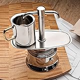 ESPRESSO MACHINE - Make tasty cups of coffee without having to use an outlet with our stovetop coffee maker. This portable espresso maker holds 2 coffee cups (sold separately) on the built-in platform and makes approximately 3oz of espresso per use. ITALIAN MADE - Constructed from stainless steel, the mini coffee maker is crafted in Italy, renowned for its coffee culture and espresso traditions to give you the ultimate combination of creativity and innovation for the best tasting coffee in minutes. SIMPLE OPERATION - This espresso coffee maker is easy to use — simply fill the boiler with water just below the valve level, fill basket with coffee, screw top on tightly, heat over a medium flame and enjoy perfect espresso brewed directly into your cups. VERSATILE USE - The portable coffee maker can be used at home, out camping, or keep it out as a functional piece of kitchen decor. Use the stove top coffee maker to brew delicious espresso shots for your cappuccino, macchiato, Americano, or mocha drinks. PRODUCT DETAILS - Materials: Stainless Steel. Dimensions: (L) 6.5” x (W) 3” x (H) 5.75”. Makes 3oz of Espresso Per Use. Made in Italy. Note: Clean the Machine Thoroughly Before First Use. Color: Chrome.