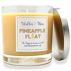 • WALTER & ROSIE CANDLE CO. - Pineapple Float 11 OZ candles The Happiest Scents on EarthTake yourself to your happy place with scents inspired by Dole Whip. This frozen treat is known for being served throughout various Disney parks. Walter & Rosie's Pineapple Float candle scent will bring back happy memories of your trips to Disney parks. It's a fresh, clean scent that will fill the air with magic. A scent filled with golden pineapple blended with creamy coconut milk.AMAZING FRAGRANCE & SUSTAINABILITYWe use a blended soy and paraffin wax in all of our products. Our Paraffin/Soy blend provides an amazing fragrance throw while maintaining the creamy look and environmentally friendly usability of soy wax. Each candle is poured into an 11-ounce jar with a suction lid. Candles have a burn time of approximately 40 hours.ABOUT WALTER & ROSIE CANDLE CO.Walter & Rosie Candle Co. manufacture scent products inspired by Disney. We are in no way affiliated with Disney. All products are interpretations of scents experienced or inspired by various resorts, rides, or characters.