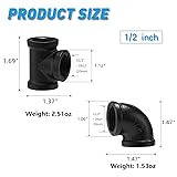 1/2" Black Painted Tee & Elbow, 10 Pack Threaded Cast Iron Pipe Elbow/Tee for Steampunk Vintage DIY Pipe Decor Project/Furniture/Shelving Decoration (10, Black Painted 1/2 Inch(5 Elbows, 5 Tees))