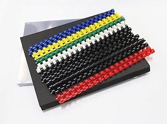 The binding set fits letter sized paper (8.5x11 inches), lend a professional touch to bind documents, perfect for binding reports, presentations, school projects and family plan. Certified by quality test reports, they can withstand frequent use. 20 Pcs of Clear Front Covers: 8 Mil PVC binding covers are long-lasting and sturdy that protect your persentation from bends and creases, can show the top page clearly, and easy to find the required documents. 20 Pcs of Black Plastic Covers: Each 16 mil Poly binding back cover Covers has two textured styles, designed with a leather-texture on one side, and a sand-texture on the reverse. (Attention: leather-like appear, not made from leather) 20 Pcs of 1/2" Colored Binding Combs: This set includes 20 pieces of 1/2" 19-ring binding combs in 4 different colors: 10 black, 2 white, 2 blue, 2 yellow, 2 red, and 2 green. Each 1/2" comb can hold up to 90 sheets of paper. Square Corners: Flush cut square corners give your work a neat presentation and they're water-proof and tear-proof to keep your persentation clean. They are well-suited for set in school offices or at home, making them a great gift for teachers, students, and colleagues.