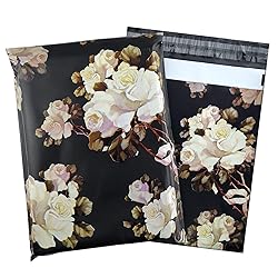 10X13 (100 Pack) Floral Pattern Poly Mailer Envelope Plastic Custom Mailing & Shipping Bags - Self Seal (White Rose)