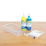 SLIME FOR KIDS: Steve Spangler's String Slime Starter Science Kit includes everything you need to make slime like you’ve never seen it before! DIY SLIME KIT: Mix up the Activator Solution and squirt your favorite String Slime color into the liquid. The instant the two liquids touch, you get solid String Slime. It’s that easy! AMAZING SCIENCE & LEARNING: Explore the science of building polymers by cross-linking long chains of molecules with this slimy science experiment kit for kids. It’s a hands-on STEM learning activity that will keep kids engaged. FUN SLIME FOR ALL AGES: The “hands-on science” factor is great for younger students while the strong content makes the activity perfect for upper-level students and teachers. It also makes a great gift idea! INCLUDED: String Slime Activator Powder 0.35 oz (10 g) Yellow, and Blue String Slime (3.4 fl oz. / 120 mL) each, 1 Plastic Squirt Tube, 1 Plastic Tank, Instruction Cards. Recommended ages 6+ with adult supervision.