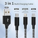 - Multi Charging Cable,2Pack multi charging cord Nylon Braided universal charger charging cords for multiple devices Adapter with Type-C, Micro USB Port Connectors for Cell Phones and More.Special Design Multi Charging Cable. One cable = three charging cables,The design of multi charging cord is very compact, small and lightweight, charging your device anytime, anywhere. Compatible with most of the mobile phones available on market.High-Quality Copper Core of 3 in 1 charging cable ensures your devices charging.Perfect Length 4ft charging cables for multiple devices is perfect length for a charging cable for long distance use. Ideal for charging anywhere, provides you a moving around the house while charging on a wall adapter.Superior Durability A tough nylon exterior of charging cords for multiple devices resists damage from the outside, while the multiple charger cord's interior is precision-designed to handle thousands upon thousands of bends.Universal Compatibility:●The Type C port: Compatible with type c supported devices.●The Micro USB port: Most Android and Windows phones, tablets and many other devices. ●The connector can be use for IOS phone. Warm tips: 1. These usb cables not only for charging, but also support data transmission. The multiple charger cord does not support fast charging. 2. Please use at least 2A USB power adapter when charging pad or multiple devices. Package:2pcs on one bag