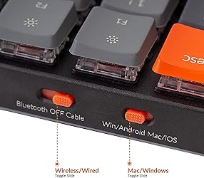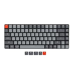 Keychron K3, a compact 75% layout 84 keys white LED backlight hot-swappable ultra-slim wireless mechanical keyboard (Exclusive color scheme) built for peak productivity, a great tactile typing experience, and let you personalize per-key typing experience without soldering. Be ready to multitask without missing a beat by connecting the K3 with up to 3 devices via the stable Bluetooth 5.1 chipset and switch between your laptop, PC, tablet and phone seamlessly. It also has wired mode with USB Type-C connection. With a unique Mac layout, the K3 has all the necessary Mac multimedia keys while still being compatible with Windows. Extra keycaps for both Windows and Mac operating systems are included. The redesigned low-profile Keychron optical switch is 40% slimmer than conventional switches with a shorter pre-travel and total travel distance that triggers an input and feedback faster than conventional/normal-profile mechanical switches. With the reinforced aluminum body (plastic bottom frame) make the K3 one of the thinnest and lightweight mechanical keyboards on the market. You can easily hot-swap every low-profile optical switch without soldering to customize your typing experience on the K3 (*This keyboard is NOT compatible with any conventional MX style mechanical switch). The pre-installed low-profile optical red switch provides unrivaled linear responsiveness with up to 70 million keystroke lifespan, and it supports NKRO on the wired mode or 6KRO on the wireless mode.