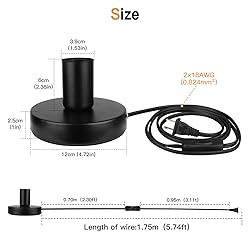 【High Quality】The table lamp base is made of high-quality plastic and metal, stable performance, and long service life. 【UL and CE Listed】The cord, switch, and base have UL and CE listed. The produce with a UL certificate brings you safety and trust 【With Switch】The simple lamp base with plug in 5.74ft cord switch, the ON/OFF switch on the power cord. this design of the lamp makes the user more safe and convenient to use it. (You need to turn on the No/Off switch to work) 【E26/E27 Medium base】Our table lamp base is perfect for any E26/E27 medium base Edison bulbs. And the industrial lamp base is also compatible with a variety of incandescent, halogen bulbs, LED or CFL light bulb. You can customize the bulbs of the vintage desk lamp you like.(NOTE: Bulb is not included.) 【Small Lamp Save Space 】The small industrial table lamp is 3.5 inch (H) x 4.7 inch (W). Small desk lamp does not require a lamp shade, making it easy to create old-fashioned atmosphere at home. Place on a desk or bedside table as a small night light. Stable performance and long service life.(NOTE: Bulb is not included.)