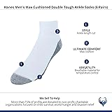 • Hanes Men's Max Cushion Ankle socks will keep you comfortable all day. These socks are not only comfortable, but are durable as well, with Double Tough Durability. Wicking Cool Comfort Fabric will help keep your feet cool and dry. FreshIQ Advanced Odor Technology helps fight stinky feet! Spandex and Comfort Toe Seam will provide comfort and a better fit.