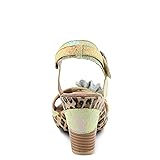 - L'Artiste Style: WILDCAT French inspired, lightweight quarter strap sandal featuring two adjustable straps with decorative buckle and decorative flowers. Padded ankle strap on a cone shaped heel. Heel Height: 3 3/4" Platform Height: 1 1/4" Features: - Upper: Leather Combo - Lining: Synthetic - Insole: Synthetic - Outsole: TPR - Closure: Hook&Loop - Accents: Decorative buckle,Decorative flowers - Upper Finishing: Embossed,Metallic - Heel Type: Cone,Chunky - Toe Type: Almond toe,Open toe - Features: Adjustable,Comfort,Hand-painted,Padded Insole,Premium Disclaimer: L’Artiste products are made with natural tanned leather using traditional hand painting techniques. This unique finishing process is used to create a natural effect with color variations to deliver authentic look and beauty.