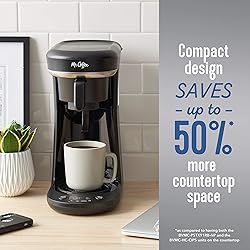 • Whether you prefer pods or drip, choose how you brew with the Mr. Coffee Pod + 10-Cup Space-Saving Combo Brewer. This programmable coffee maker lets you to brew a single cup using a pod or K-Cup*, or up to 10 cups of drip coffee into a carafe. The pod holder attachment makes this coffee maker more versatile: you can brew 2 ways, and save up to 50% more countertop space.** This coffee making machine is designed with a Strong Brew Selector, as well as an advanced water filtration system to help improve coffee flavor. This drip coffee maker also features a stainless steel thermal carafe that keeps coffee hot for hours. When brewing a carafe, if you need a cup before brewing is finished, use the Grab-a-Cup feature. Also includes removable reservoir, and a reusable single-serve filter. *K-Cup is a trademark of Keurig Green Mountain, Inc. Sunbeam Products, Inc. is not affiliated with, endorsed by, or sponsored by Keurig Green Mountain Inc. **Compared to models BVMC-PSTX91RB and BVMC-HC-CIP