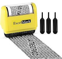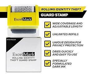 - ExcelMark Rolling Identity Theft Guard Stamp with Refill Ink Set - 3 Refill Ink Bottles