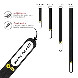 It’s not nice to label people. But it can be really nice to label your stuff. These straps feature a write-on label for easy identification. Get Organized: Use for home, junk drawer, tech, and garage organization and cable or cord management. Quickly organize, store and wrap cords, cables, wire and more. Label: Each strap features a tab for labeling your cords, cables, wire, or whatever you need to wrap up! Multi-Purpose, Reusable and Durable: A great alternative to zip ties and other one-time use fasteners. Includes: four 5-in. x 0.75-in. / four 8-in. x 0.75-in. / four 12-in. x 1-in. / four 18-in. x 1-in. cinch straps with write-on label
