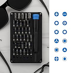 PORTABLE: iFixit's Moray Driver Kit offers maximum utility in a small package sized to keep on hand in a kitchen drawer, a car glovebox, or a toolbox. COMPLETE: Included in the case is our 4 mm precision bit driver handle with an integrated SIM eject pin, magnetic bit socket, knurled grip, and swivel top—plus 32 precision driver bits with 4 mm hex shank and extended-reach long necks. FUNCTIONAL: The bit kit lid is held in place with magnets to increase product lifespan (no more broken hinges or clasps). If you need help keeping your screws and parts organized, use the lid's integrated sorting tray. MUST-HAVE: Whether you're a professional fixer or a weekend warrior, this bit kit has what you need to disassemble, repair, and reassemble smartphones, game consoles, wearables, laptops, desktops, tablets, small appliances, and much more! IFIXIT QUALITY: Covered by iFixit's Lifetime Warranty.