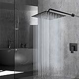 Voolan Rain Shower Head - High Flow Large Rainfall Shower Heads Made of Stainless Steel - Waterfall Bathroom Square Showerhead - Ceiling or Wall Mount (12" Black)