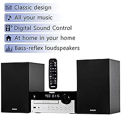 PHILIPS Bluetooth Stereo System for Home with CD Player, MP3, USB, Audio in, FM Radio, Bass Reflex Speaker, 60W, Remote Control Included