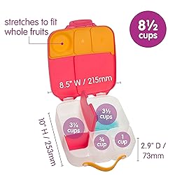 La caja de almuerzo b.box es perfecta para los grandes comedores de 3 años en adelante y es una caja bento imprescindible para niños. Ya sea para la escuela, citas de juego o salidas, esta caja de almuerzo para niños ofrece 4 compartimentos espaciosos, incluyendo 2 secciones a prueba de fugas que contienen desde un sándwich completo hasta bocadillos en gran cantidad, haciéndola ideal como caja bento para sándwiches o contenedor de bocadillos. Su característica única de estiramiento de silicona cabe frutas enteras como manzana, naranja, melocotón o banana, mientras que el clip de fácil agarre la hace perfecta para las manitas pequeñas para abrir y cerrar. Esta caja bento también es fácil de limpiar con un inserto de silicona removible para lavarla a mano, asegurando que sea un contenedor de bocadillos duradero y reutilizable. Perfecta para familias, esta caja de almuerzo para niños es amada en todo el mundo por su versatilidad, haciéndola una caja de almuerzo ideal para niños. Ya sea que necesite una bolsa térmica para mantener las cosas frescas, o contenedores de bocadillos reutilizables con tapas, la caja bento b.box se adapta a cada ocasión, desde almuerzos escolares hasta salidas familiares, ofreciendo una caja de almuerzo a prueba de fugas para niños con un diseño divertido y colorido.