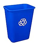 Amazon Basics Rectangular Commercial Office Wastebasket, Easy to Clean, Lightweight, 10 Gallon, Blue, Recycle Logo