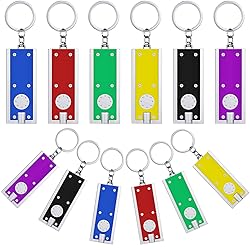 • 12 Pieces mini led keychains tiny light torch flashlight key ring dog collar light in assorted colors portable key chain flash light for camping outdoor equipment Features: The tiny key rings are designed with stylish appearance, combined with classic colors, which have multiple options to choose, and equipped with LED lights, bringing you light in the dark. Wide usage: The LED keychains not only can be applied as decorations to make your keychains, bags, dog collars beautiful, but also they can be as a practical lighting tools to help you bring light when you in need. Specifications: Material: plastic Size: 5.9 x 2.4 x 1 cm/ 2.3 x 0.9 x 0.4 inch Quantity: 12 pieces Color: as shown in the picture Package includes: 12 x LED keychains Note: Manual measurement, please allow little size errors. The colors shown on picture may be biased from the true color, please refer the real objects.