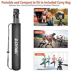 🔥🔥🔥【Multi-Functional Tripod Kit】: UEGOGO tripod only 568g, height varies from 16.5 inches to 59 inches in a short time,it can be 62 inch with phone holder. versatile tripod fits a variety of devices well, including DSLR, SLR, action camera, GoPro, webcam, camcorder, Phones, projector, and some kinds of night light. Perfect for Video, Photographers, Youtube, vlogging, live streaming and Family Gathering. 🔥🔥🔥【3-WAY PAN HEAD WITH LEVEL BUBBLE】The convenient handle and built-in bubble level can realize the tripod pan and tilt movement, to meet any angle required by the user. The bubble level will help you keep it level, and the anti-slip rubber foot will prevent It from slipping even in uneven ground or ice surface. Equipped a stable smooth 3-way pan head can freely adjustable angles for 360° panoramic shooting. So you get perfect photos and stunning panoramas every time 🔥🔥🔥【Universal Compatible Phone Tripod】This tripod comes with a phone holder, the phone clip adjusts between 2.36-3.54 inches, works for iPhone 15/15 Pro max/15 Pro/X/XS/XS MAX/XR/ 14/14 Plus/13 /13Plus/12 Plus/11 /8 /8 Plus/7 /6 /6s series, Samsung Galaxy 9/S10/S20 or other smart-phones. It also has padded grip to avoid cellphone damage. Kindly Tips: The maximum load capacity of this cell phone tripod is 4.4 lbs. No recommend for use with large and heavy equipment 🔥🔥🔥【Remote Control】Our cell phone tripod with the accompanied Remote Shutter for iOS and Android Phones, it allows you to take selfies or group photos easily from a distance up to 10 m/33 ft. No apps needed to download, the remote easily connects to your cellphone's Bluetooth and has no issues taking photos using the remote, great for selfies, family portrait photos, party, travelling, hiking---Free your hands to record wonderful moments. (*Note: the remote not works with the camera) 🔥🔥🔥【100% Satisfaction Guarantee& Shopping Experience】With a bag for easy carrying and secure storage the tripod. you will get: 1 x tripod, 1 x carry bag, 1 x Remote control, 1 x Phone Mount, 1 x sport camera tripod mount, 1 x instruction manual. UEGOGO provides Lifetime Service. Contact us freely if any issue occurs, we will offer proper solution for you at the first time. The best phone tripod stand? Here you get