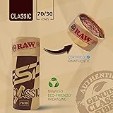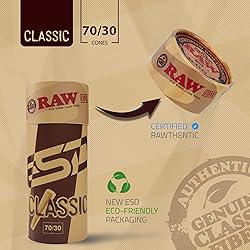 Convenient Pre-Rolled Cones: Enjoy effortless rolling with RAW Classic 70/30 pre-rolled cones, each perfectly shaped and ready for use, saving you time and ensuring a perfect roll every time 102 Cones per Pack: Each pack contains 102 high-quality, slow-burning cones, providing ample supply for extended use and great value for your money. Cones come in 34 Stacks of 3!!! Genuine RAW Authenticity: Made from unbleached, natural fibers, these cones are designed for those who appreciate the purest smoking experience, with the trusted RAW branding ensuring authenticity and quality Compact and Easy Storage: The cones come stacked in a sleek, cylindrical container for easy storage and portability, keeping your cones fresh and intact wherever you go Versatile Size: The 70/30 size holds 0.30g, making it ideal for solo sessions or sharing with friends, providing just the right amount for a satisfying smoke without waste
