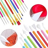 Cookie decorating tools set: you will receive 21 pieces of cookie decorating tools in total, including 6 pieces of cake decoration brushes, 6 pieces of sugar stir needles and 9 pieces of cake decorating sculpting modeling tools, good combinations to carve your cakes and cookies Durable and safe to use: these cake decorating brushes, scriber needles and paste tools are made of plastic and metal material, featuring bright and attractive colors which are not easy to fade, durable and reliable, they won't rust or break easily, will accompany you for a long time Add charms to food: it is a smart way to use our cake decorating tools to create different shapes or patterns as you want, the included brush is so soft to be applied to depicting various beautiful patterns, blend colors or remove residues on the surface; The stir needle is suitable to stir the sugar or draw the shape; The DIY cake fondant and gum paste decorating tools come with double heads and different shapes, will meet your different needs for molding, baking, etc. Proper size to use: each scriber decorating needle measures approx. 13.2 cm/ 5.2 inches in length, the size of our plastic carving tool is approx.18 cm/ 7.1 inch in length, the cookie decoration brush measures about 13.5-16.5 cm/ 5.3-6.5 inch in length, all the appropriate sizes are provided for your DIY cookie decorations Wide range of usages: these DIY cookie decorating tools are suitable for making cakes, sugar pastes, candies, fondants, cupcakes and more, widely applied for parties, gatherings, wedding and more occasions, you can enjoy the happy DIY time with your family members and friends, which will make you become closer and add more fun to your party