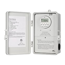 [Multiple Setting & 5 Modes] Up to 20 ON/OFF schedules for 7-day repeat cycles or a single-day setting to meet your needs; pool controller has options for Always ON/ OFF, AUTO ON/OFF, and Daylight Saving Time (DST) modes; turn it ON/OFF or change modes using the MODE button; multiple modes & day settings to save on your electric bill [Heavy Duty 40 AMP & Versatile] With 40 Amp 2HP 120/240/277 VAC, the pool pump timer control up to 2 units at once; designed for outdoor/indoor high-power appliances like pool pumps, heaters, filters, and other motor-driven equipment; giving peace of mind and convenience for managing your pool and outdoor equipment [Built-in Battery Keeps Settings] Backup battery included with 3 months available; No need to repeat settings for 7-day pool timer switch in case of power failure; hassle-free use; No more worry about losing your previous timing and settings [Weather-resistant & Durable] Waterproof resin PC housing with flame-retardant insulation resists UV & high temperatures; 2 water outlet holes prevent water from entering the junction box; pool pump timer outdoor operate from -40℉ to 140℉ for long-lasting performance; No need to turn it off or store it in bad weather [Easy Installation] Removable timer module makes simple wiring and hassle-free; heavy-duty pool timer wiring apertures in 2 sizes (1/2'' and 3/4'') to suit your needs; included wiring caps to simplify the installation process and ensure a smooth setup