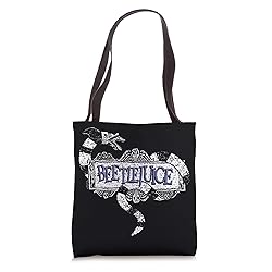 Beetlejuice Logo - This Product is 100% authentic and officially licensed Beetlejuice merchandise! Beetlejuice is the film where a recently deceased couple hire "bio-exorcist" Beetlejuice to scare away the new living residents of their dream home. Directed by Tim Burton and starring Alec Baldwin, Geena Davis, Winona Ryder, and Michael Keaton. 16” x 16” bag with two 14” long and 1” wide black cotton webbing strap handles. Made of a lightweight, spun polyester canvas-like fabric. All seams and stress points are double-stitched for durability, and the reinforced bottom flattens to fit more items and hold larger objects. Spot clean/dry clean only.