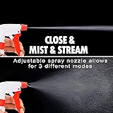 【HDPE Eco-Friendly Material】Empty Spray Bottles for Cleaning Solutions are Manufactured With Strong HDPE, the BPA-Free Plastic Durable and Chemical Resistant. Cleaning Spray Bottle Unlike Glass, No Longer Need to Worry About the Bottle Shattering If It Accidentally Falls. The product is not easily spoiled 【No Leak And Clog】Spray Bottles for Cleaning Solutions is Constructed with No Rubber Parts; Our Sprayer Features a Long-Lasting Polypropylene Spray Head, Tight and Secure Cap Closure, Internal Cap Gasket, 302 Stainless Steel Spring and a Precision Valve and Piston, so No Clog and Leak; A Proven and Reliable No Leak Venting System Primes Quickly and Stays Primed. 【Adjustable Nozzle】water spray bottle Rotate the Nozzle Before Use. From a Fine Mist To a Solid Stream, The Sprayer Can Be Easily Adjusted to Suit Your Needs. Extended Suction Tube Gets Every Last Drop 【Multifunction Use Cleaning Supplies】16oz 2 Pack Lightweight Alcohol spray bottle are Semi-Opaque and Come Equipped with an Adjustable Spray Nozzle. Use plant spray bottle around the House, Pet, Lawn and Garden and Watering Plants, Succulents, Herbs, Ironing, Laundry, Car Detailing, BBQ, Homemade DIY Cleaning Spray Bottle If the Product did not spray, nomally when Nozzles don’t “spray" Please forcefully insert this Tubes/Straw into the innermost part of the nozzle, and the Nozzles is a Adjustable. if this can not spray you need to try rotate the Nozzle before use. This nozzle can only be used for watering flowers, alcohol, and cleaning is very suitable. Dont put powder, viscous liquid, such as oil and essential oil